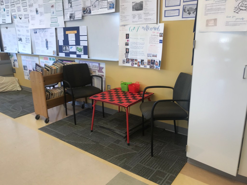 In August 2018, I decided to splurge on a bigger, nicer carpet for my front corner work area. I wanted to make a more inviting atmosphere, one where students would want to work. I personalized the area by posting student work, hoping they would find the corner a place that was comfortable, inviting….