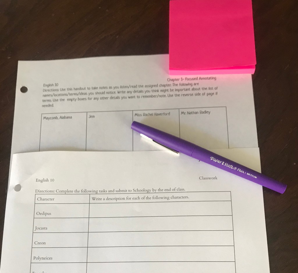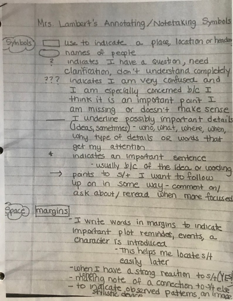 After I assign them, I make a point to use the resources again in a different way so they can see that they were not a stand-alone assignment that they perceive as busy work but rather something that helped them learn material, earned them homework credit and was useful in another way. For example, when I have required the completion of the above handout for each reading assignment, I would later have them use them to gather quotes for a major writing assignment. I am clear when I assign the note taking sheets that it is definitely worthwhile to complete them because they will save them time in the long run. Once they see that this is true, there is a definite buy in. If they didn’t complete them the first time, they are more likely to do so the next time. Again, I am always reminding them to work smarter not harder.
